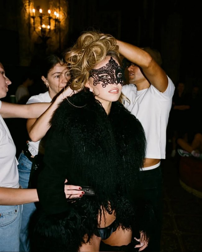 Gwiazda pokazała, jak nosić pończochy z klasą, zestawiając je z futrzanym bolerkiem i pasem do podwiązek. Tego typu odważne stylizacje gwiazd natychmiast stają się obiektem dyskusji w całej sieci. Prawdziwym hitem okazała się jednak mroczna maska maskaradowa, która dodała tej sesji niesamowitego, wręcz hipnotyzującego i pikantnego klimatu.